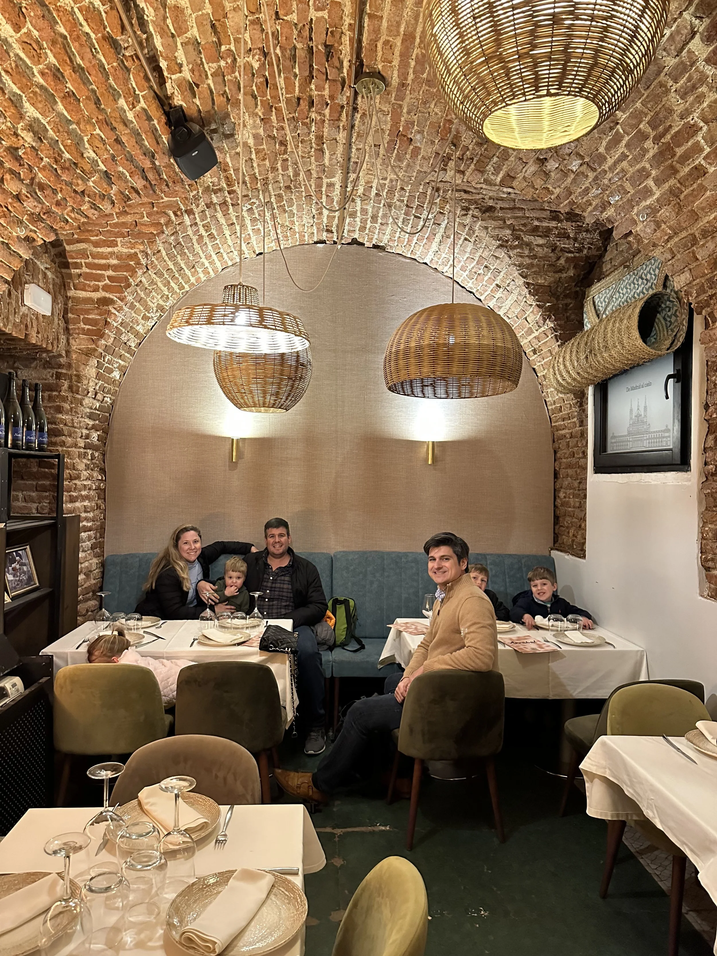 Once the apartment was ready, we got settled in and took a breather (unpacking always seems to take longer with kids!). For dinner, we headed to Restaurante DCorazón, which is tucked beneath Plaza Mayor in a historic 16th-century cave. It sounds fancy, but it was actually super cozy and family-friendly. We lucked out and had the entire tunnel-like dining area to ourselves—ideal for a relaxed meal where the kids could be themselves without us worrying about disturbing anyone.