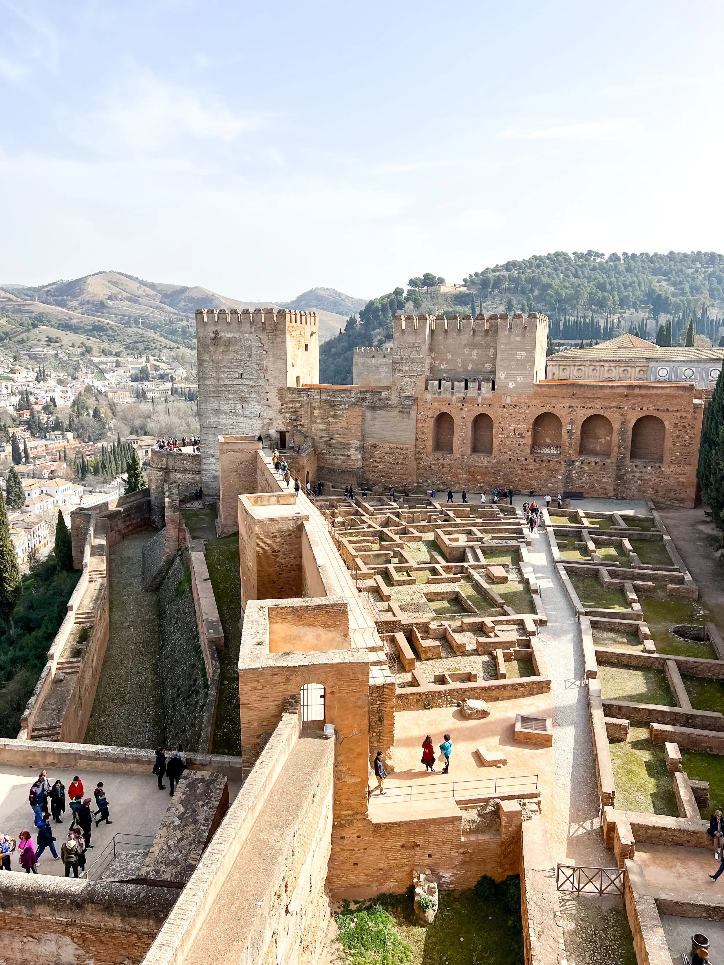 Since the Alhambra grounds open at 8:30 AM, we made it a point to arrive early—giving ourselves time to navigate security, enjoy the peaceful gardens, and visit the Alcazaba fortress before our timed palace entry. It was a calm, cool morning, and the kids loved roaming the walkways, peeking through stone towers, and spotting fountains and flowers tucked into courtyards.