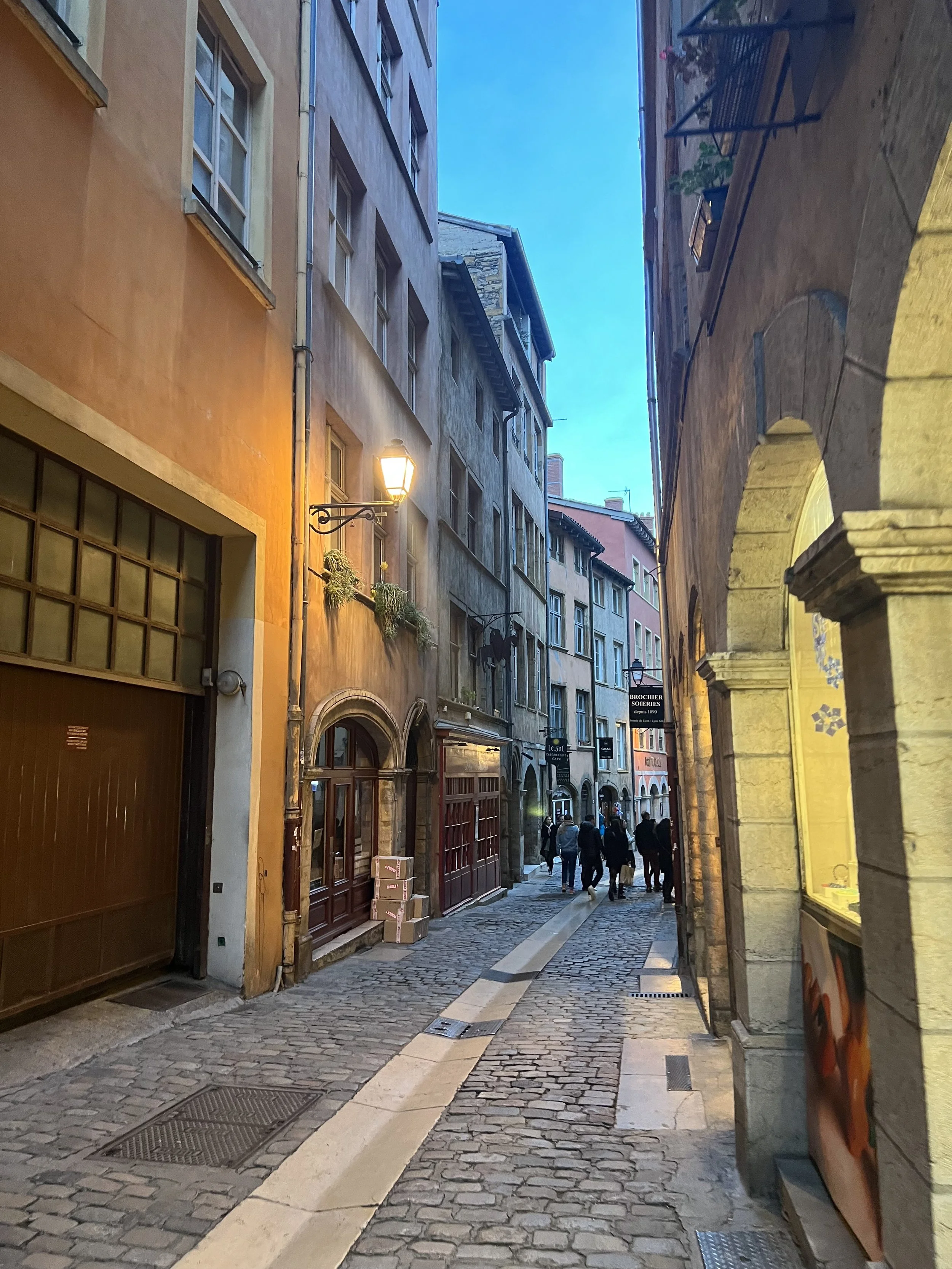 We wandered through charming squares and hidden courtyards, window-shopped antiques and books, and took it slow to soak up the atmosphere. For dinner, we settled in at Bouchon Les Lyonnais, a cozy and classic spot for traditional Lyonnaise cuisine. After a long day of travel and pastry sampling, an early dinner was perfect.
