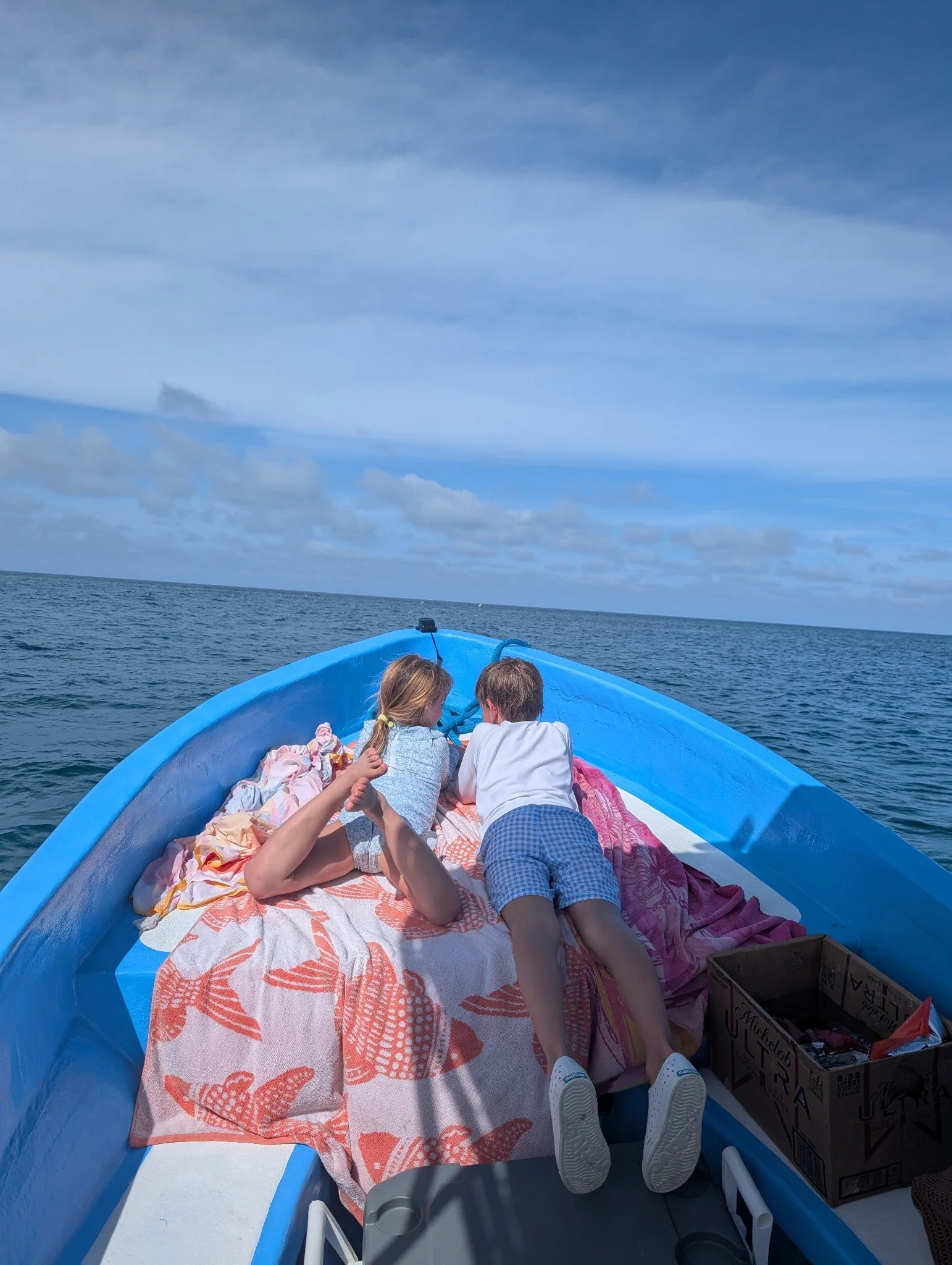 He turned to us and casually asked, “Want to go try and find it?” Um… duh! We immediately took off. Within 30 minutes, we were in the water swimming with a whale shark. It was completely unexpected — definitely not on our vacation bingo card — and hands down one of the most incredible adventures we’ve ever had with our kids. We were riding the high of that moment for the rest of the trip.