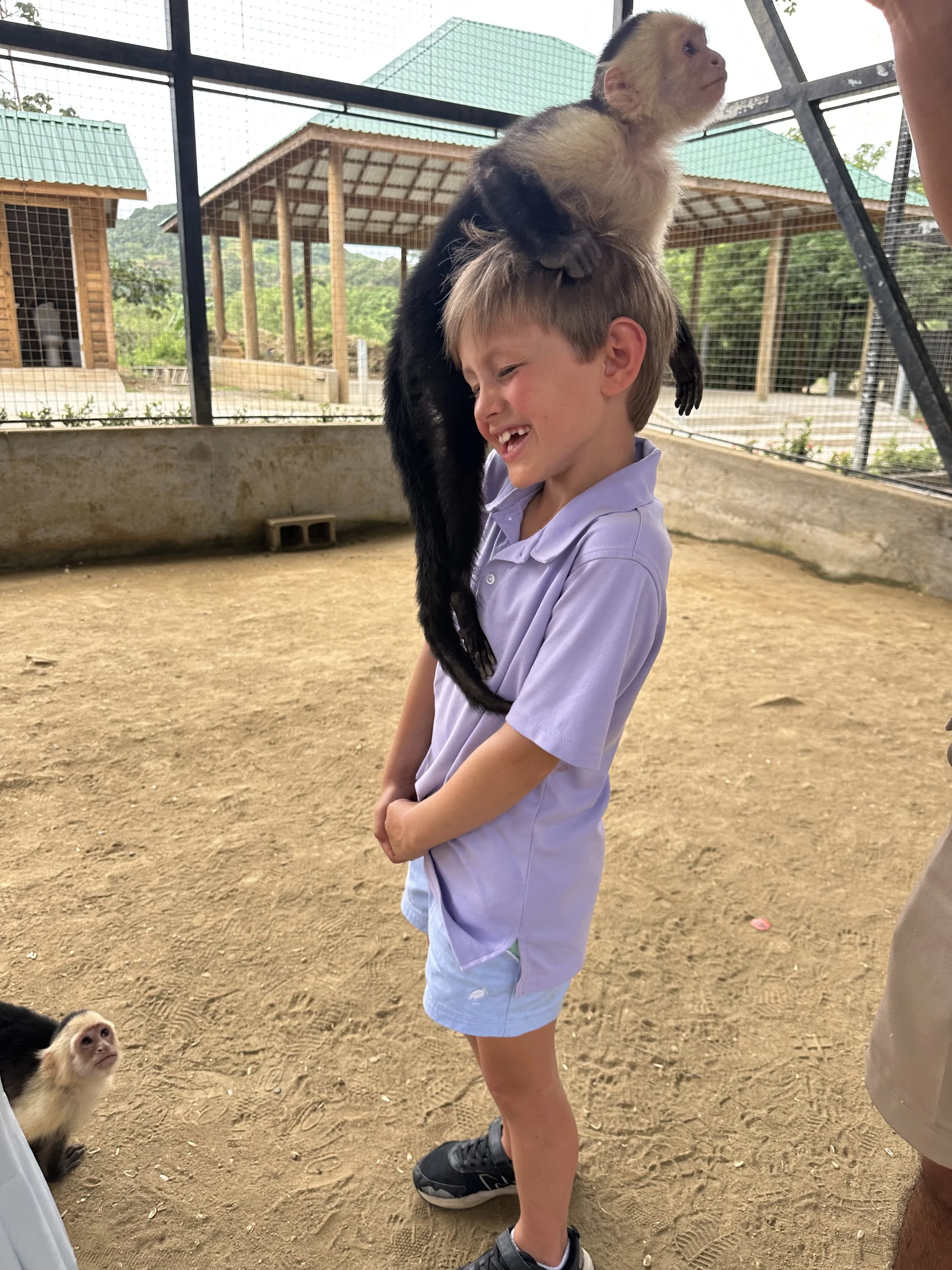 Our next stop was Daniel Johnson’s Monkey and Sloth Hangout, and it absolutely delivered. For just $12 per person, we got to hold a sloth (yes, a real sloth!), feed monkeys, and take photos with vibrant macaws. It was a short and sweet experience, but one the kids (and let’s be honest, the adults too) won’t forget anytime soon.